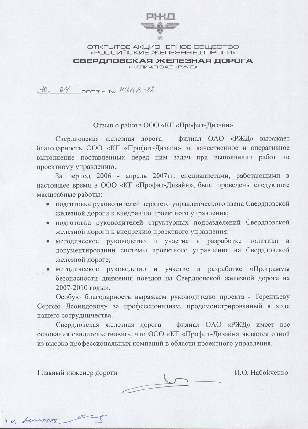 • Методическое руководство и участие в разработке «Программы безопасности движения поездов на СвЖД на 2007-2010 годы».