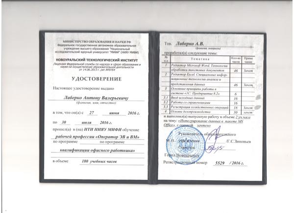 Недостатки: Недостатков, препятствующих выполнению работы, не имею.. Владение компьютером на уровне «уверенный пользователь»