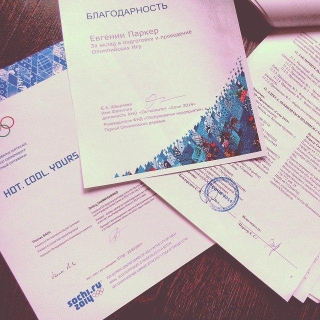 Награждена сертификатом от президента Международного Олимпийского Комитета Томаса Баха и благодарственным письмом от Оргкомитета Сочи 2014.