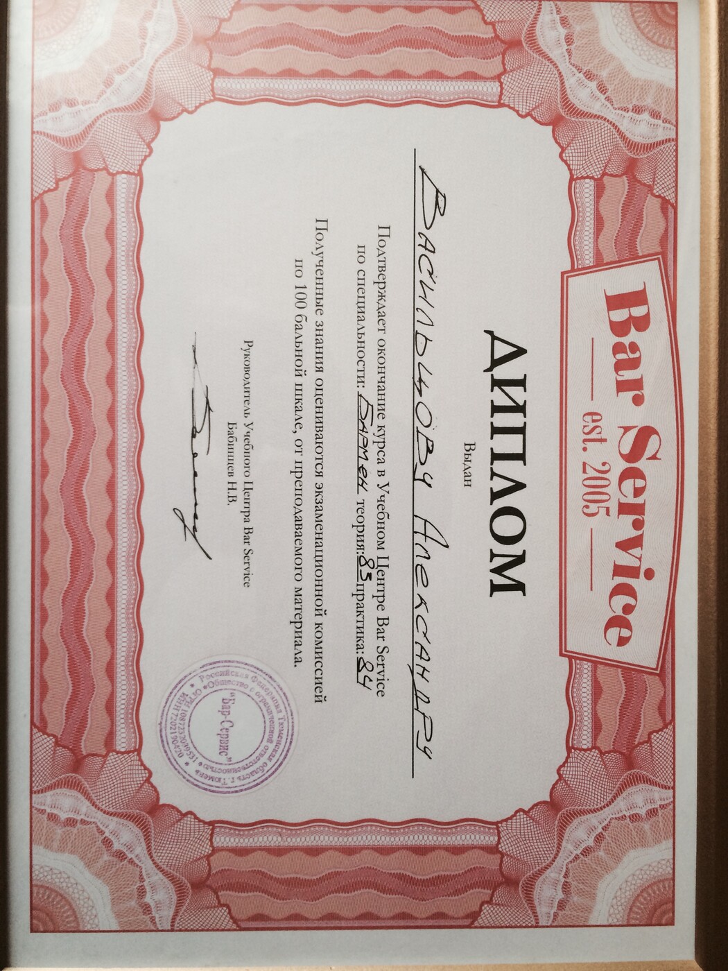 Фактическое начало работы барменом,понимание основных принципов работы.