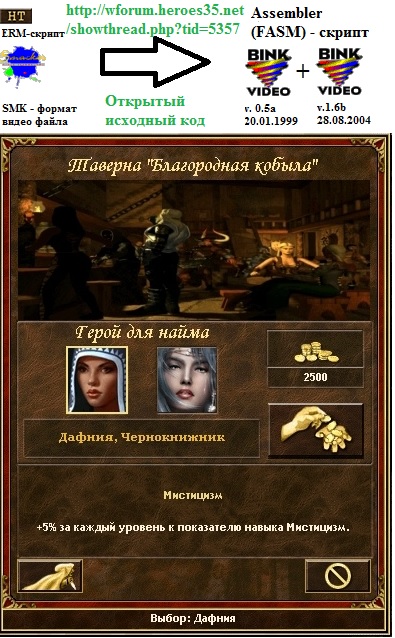 1.1)TavernVideos BIK (Assembler) http://wforum.heroes35.net/showthread.php?tid=5357 (добавление поддержки новой версии Binkw32.dll, оптимизации и т.д.)