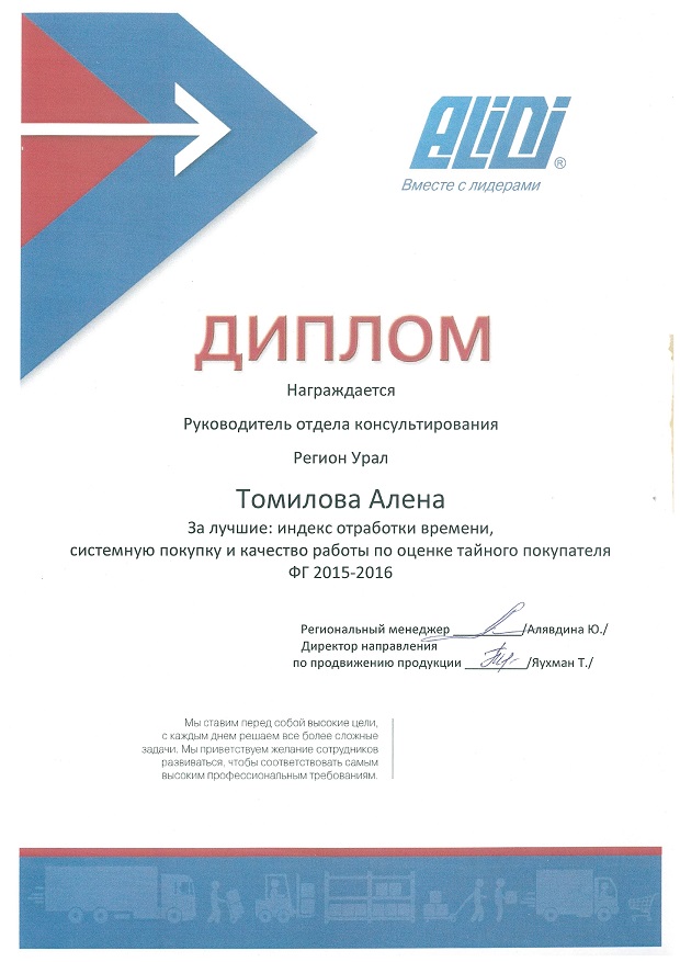 - Успешное прохождение ежеквартальной независимой оценки «Таинственный покупатель» с результатами работы региона выше ожиданий компании партнера (присутствие персонала на местах - 98%, качество работы - 95%);