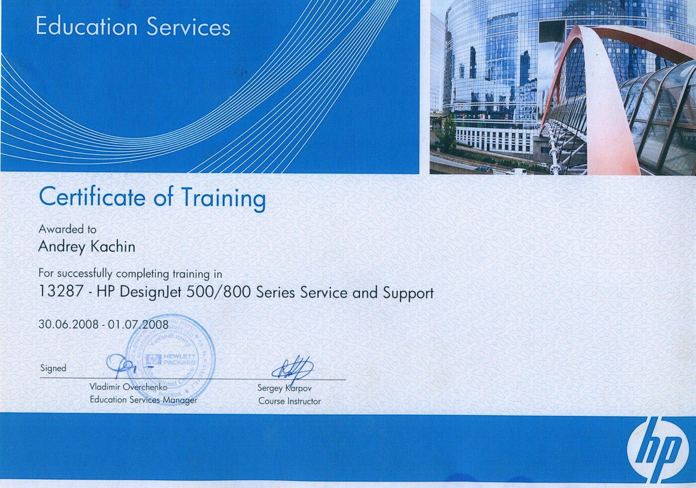 Москва. Учебный центр Hewlett-Packard Development Company, L.P. Курс: 13287 – НР DesignJet 500/ 800 Series Service and Support.